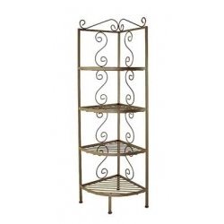 These aged iron corner bakers racks make excellent store displays for gift, specialty, gourmet and department stores. They are a great accent piece in any room in the home. They are fully assembled and they are made of solid iron. They feature four wire shelves for storing wine, food products, and beverages. It is extremely strong and durable and will add elegance wherever it is placed. .